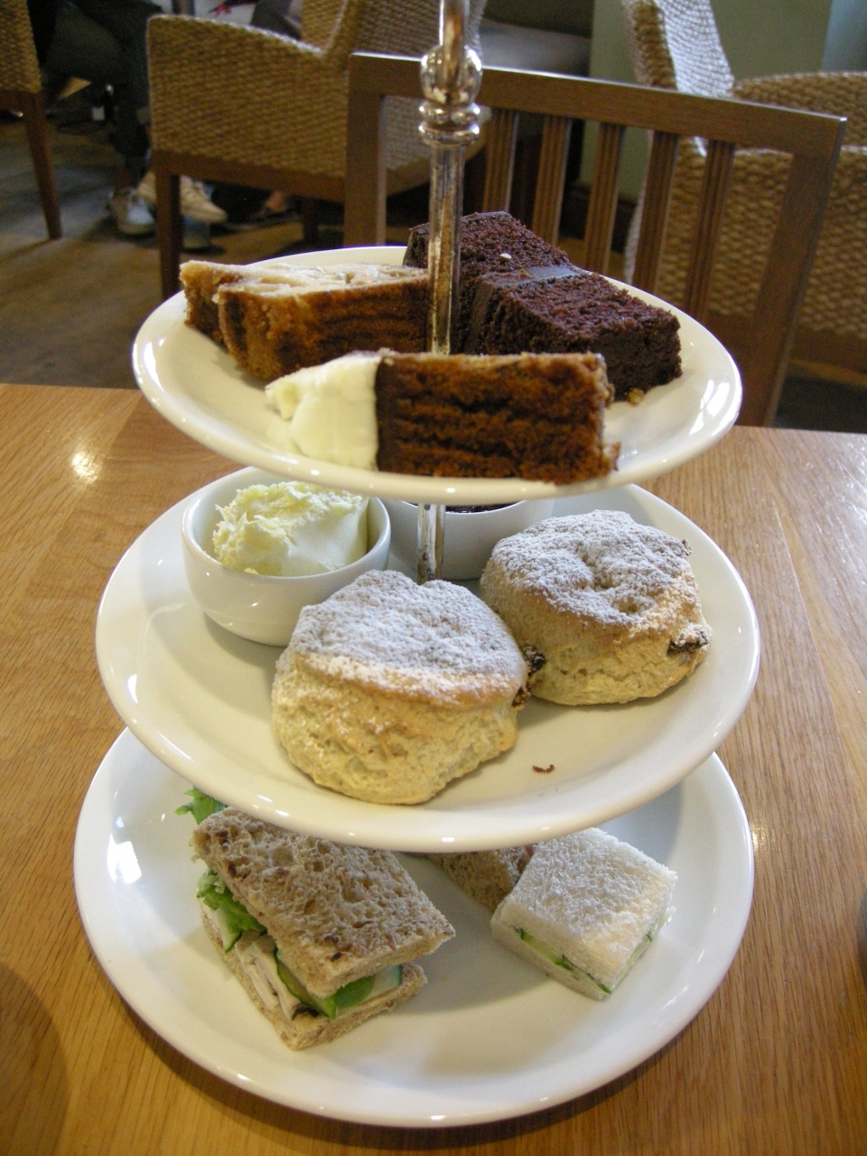 クライストチャーチのすぐそばにあります。近くにはアリスショップがありますが、このカフェも店内の壁面にアリスにちなんだ絵が描かれています。明るい雰囲気の入りやすいカフェでした。デラックス・トラディショナル・アフタヌーン・ティーを注文しました。11・95ポンド、約1600円くらいですからかなりリーズナブルだと思います。