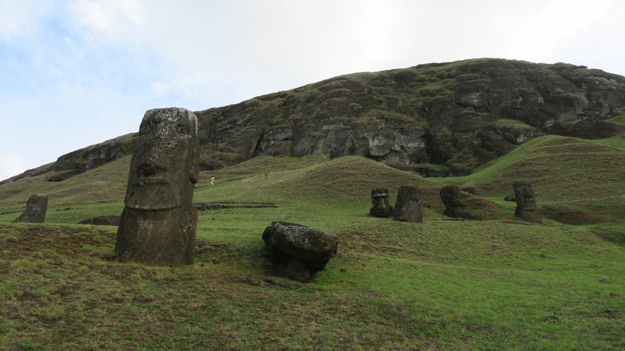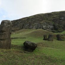 イースター島観光の中でも最も時間をかけて周りたい場所です。島の一番東側近くの丘陵地帯にあり、モアイであったり、切り出している途中のモアイであったりを見ることが出来ます。私たちはドライバーガイドをチャーターして島内を回ったので、団体のお客さんが増えるまえに見て回ることが出来ました。
