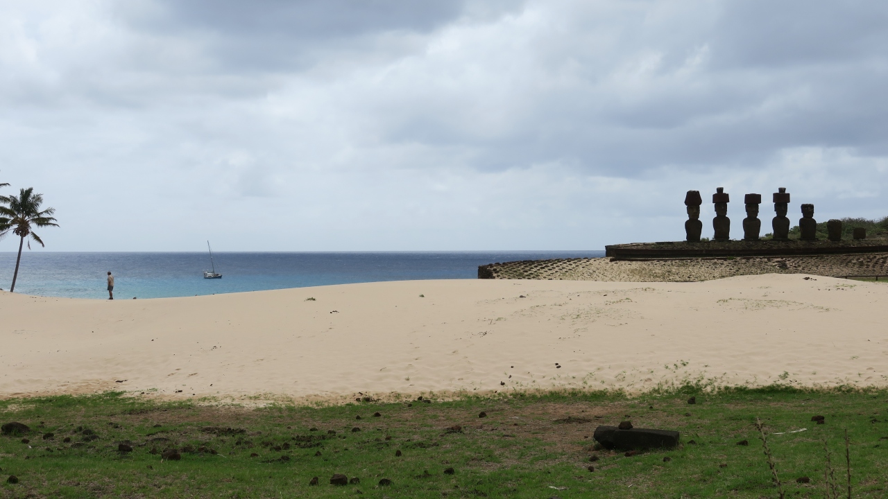 「アナケナ ビーチ」は、イースター島の北側にある島唯一のビーチです。偏西風の影響で島の西海岸は波が荒いのですが、それに比べると大変穏やかな波でした。