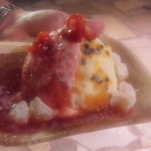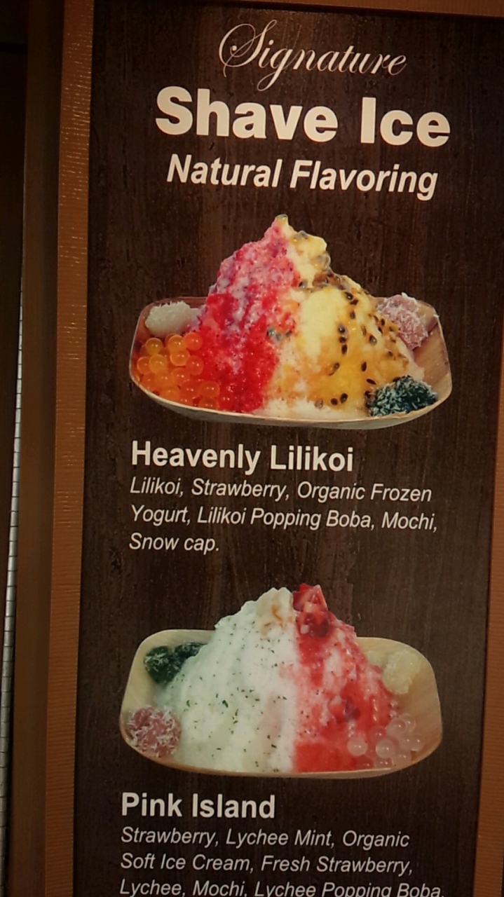 自家製の人工甘味料が使われてないシロップでできているようで甘さ控え目でした。一押しらしいヘブンリーリリコイ(パッションフルーツとイチゴ)をシェアで食べましたが中にフローズンヨーグルトも入りとてもさっぱりしていました。他に餅やタピオカチックなプチプチしたものなどがトッピングされており、普通のシェーブアイスに飽きてさっぱりしたシェーブアイスを食べたい方にはいいと思います。