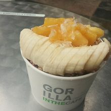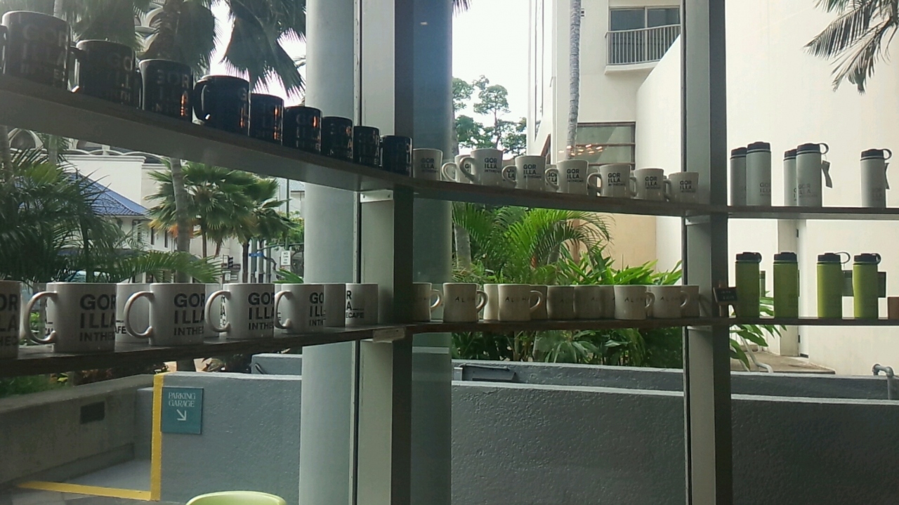 ホクラニ近くのロイアルハワイアンショッピングセンター端の近くのスタバは朝はいつも混んでいて並んでいるので、ゴリラ イン ザ カフェに行ってピタヤボールとコーヒーを買ってみました。