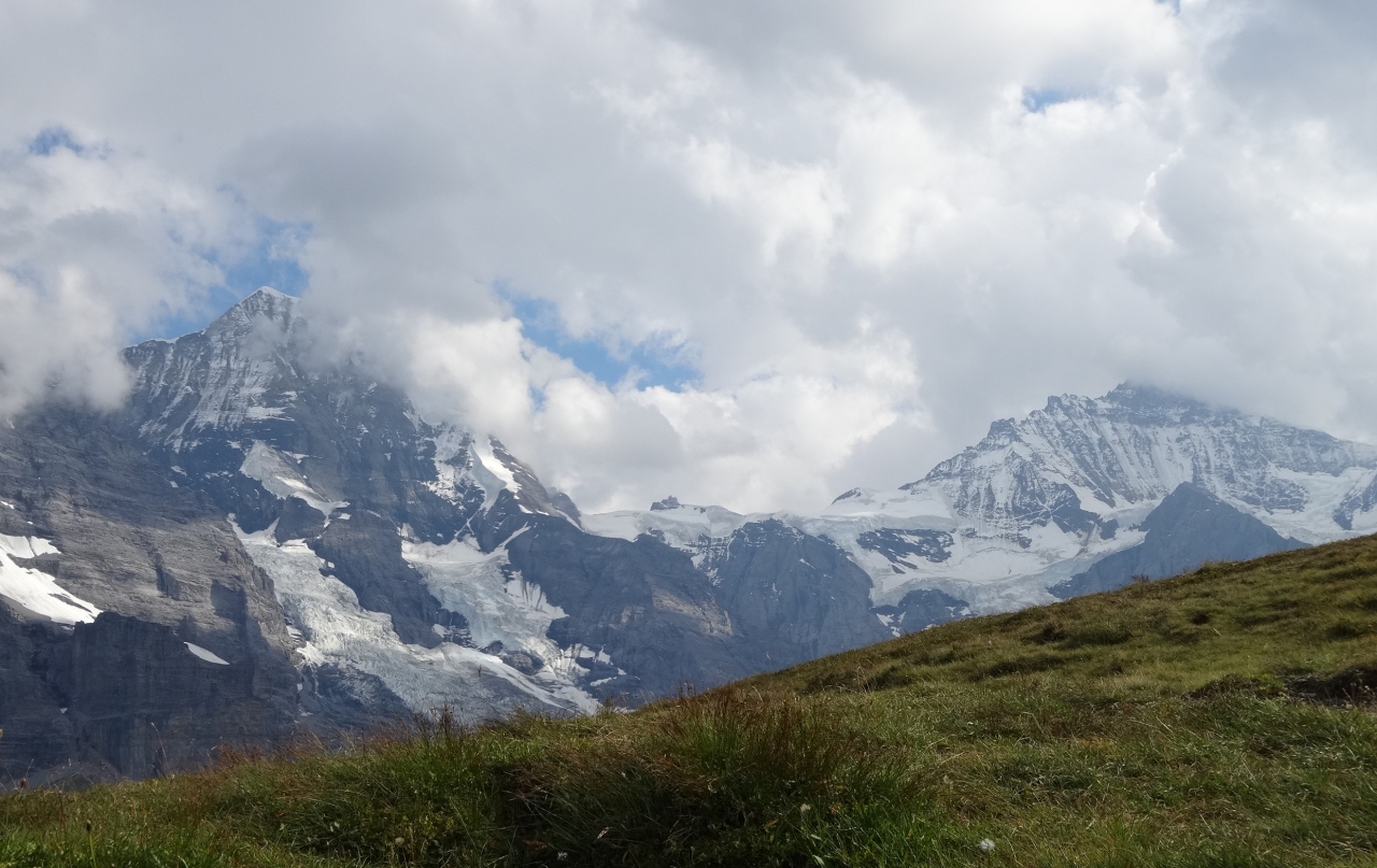 次第にユングフラウ三山の全景が正面に広がってくる。