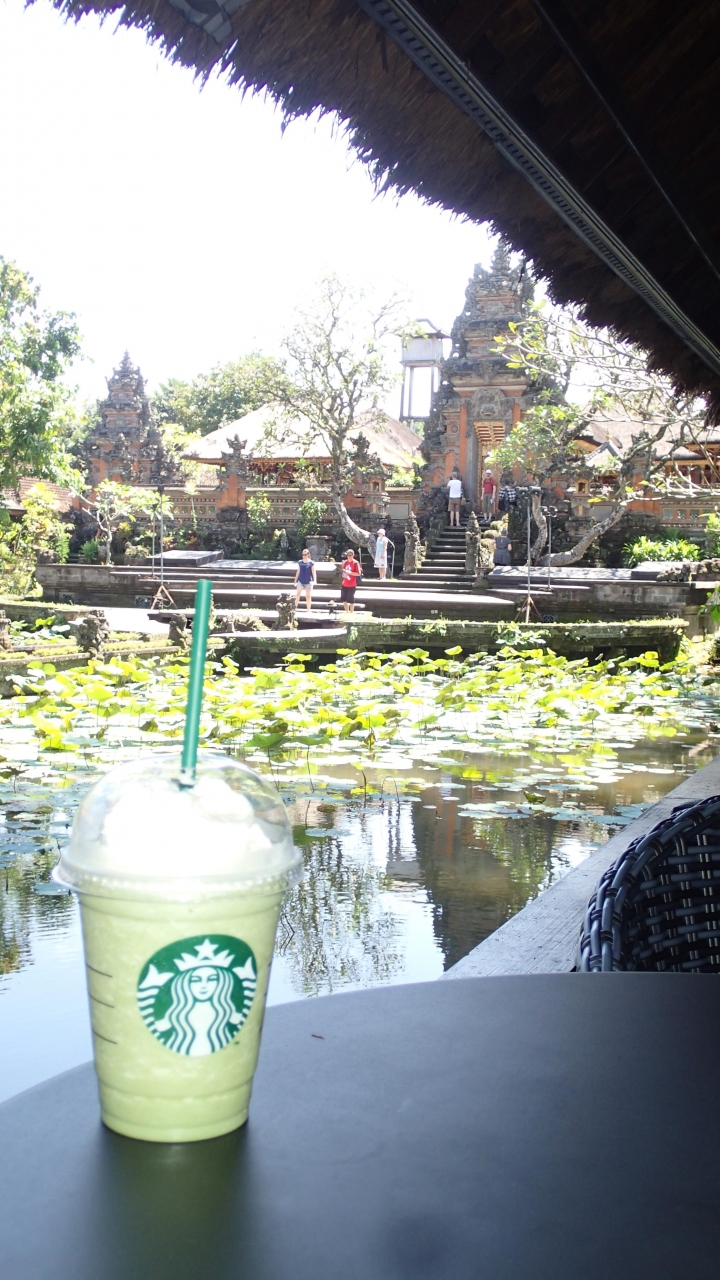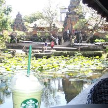 ウブドを散歩した後、水分とカロリーの補給のために立ち寄りました。このお店はテラス席の前に池と寺院を借景にしているので、雰囲気を楽しめます。