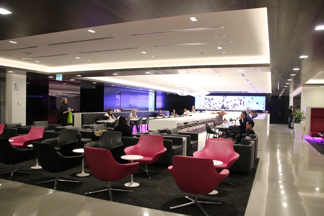 ニュージーランド航空の朝便出発前に利用。飛行機が多く見えて、展望デッキにあるような雰囲気。椅子の形がいろいろあって、自分に合う場所を探すのが楽しい。