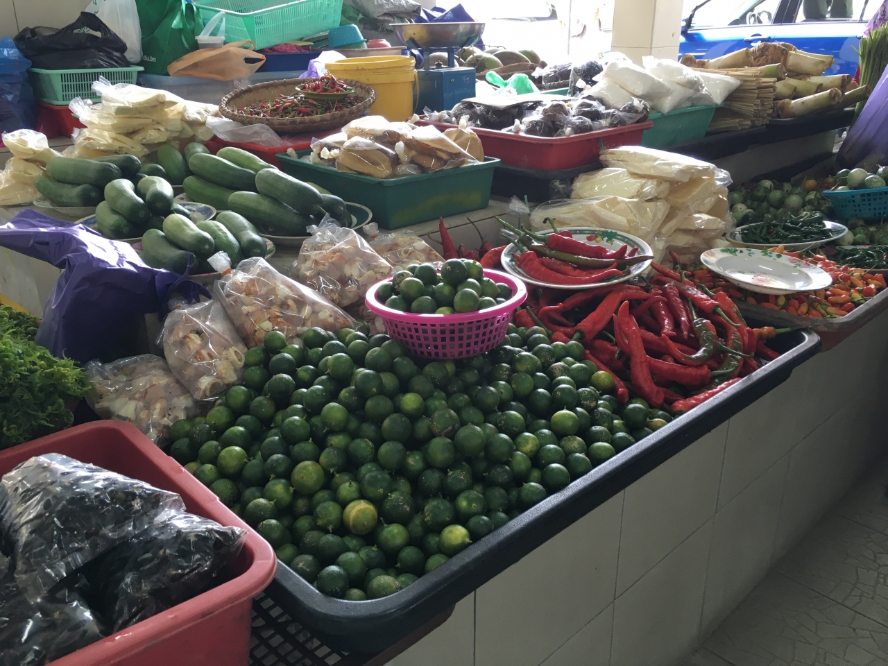 マーケットの入り口あたりには観光客向け(?)の網かごや楽器を売る店舗もありますが、マレーシアよりも物価が高い分余りお得感はないような…。