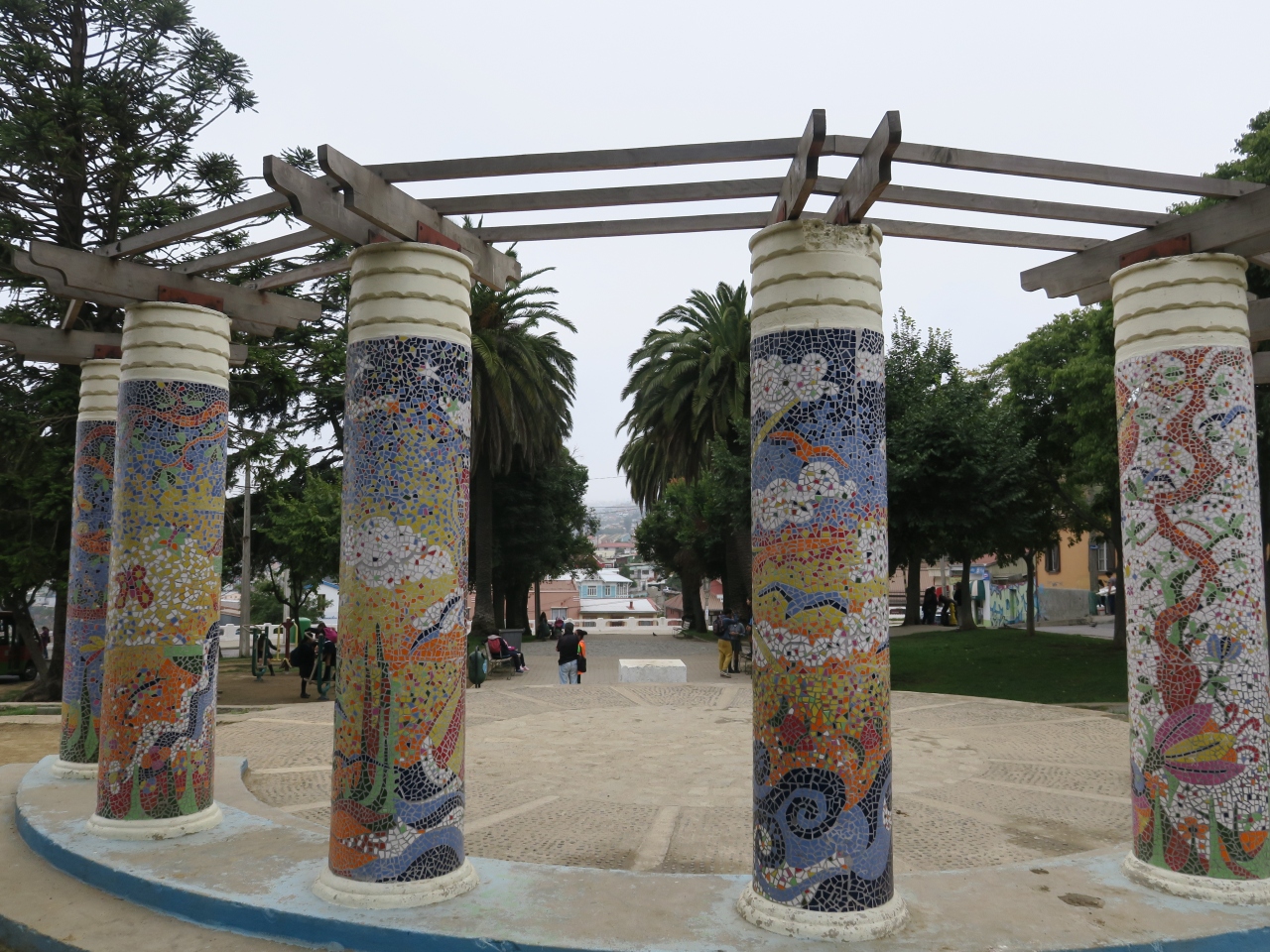 バルパライソの市街から坂を丘の方に登っていくと、ビルであったり壁であったりが美しくペインティングされています。ガイドさんによると、これらはアーティストに依頼して書いてもらっているとのこと、その発想に驚きました。歩いているだけで楽しくなるような光景がたくさんあります。