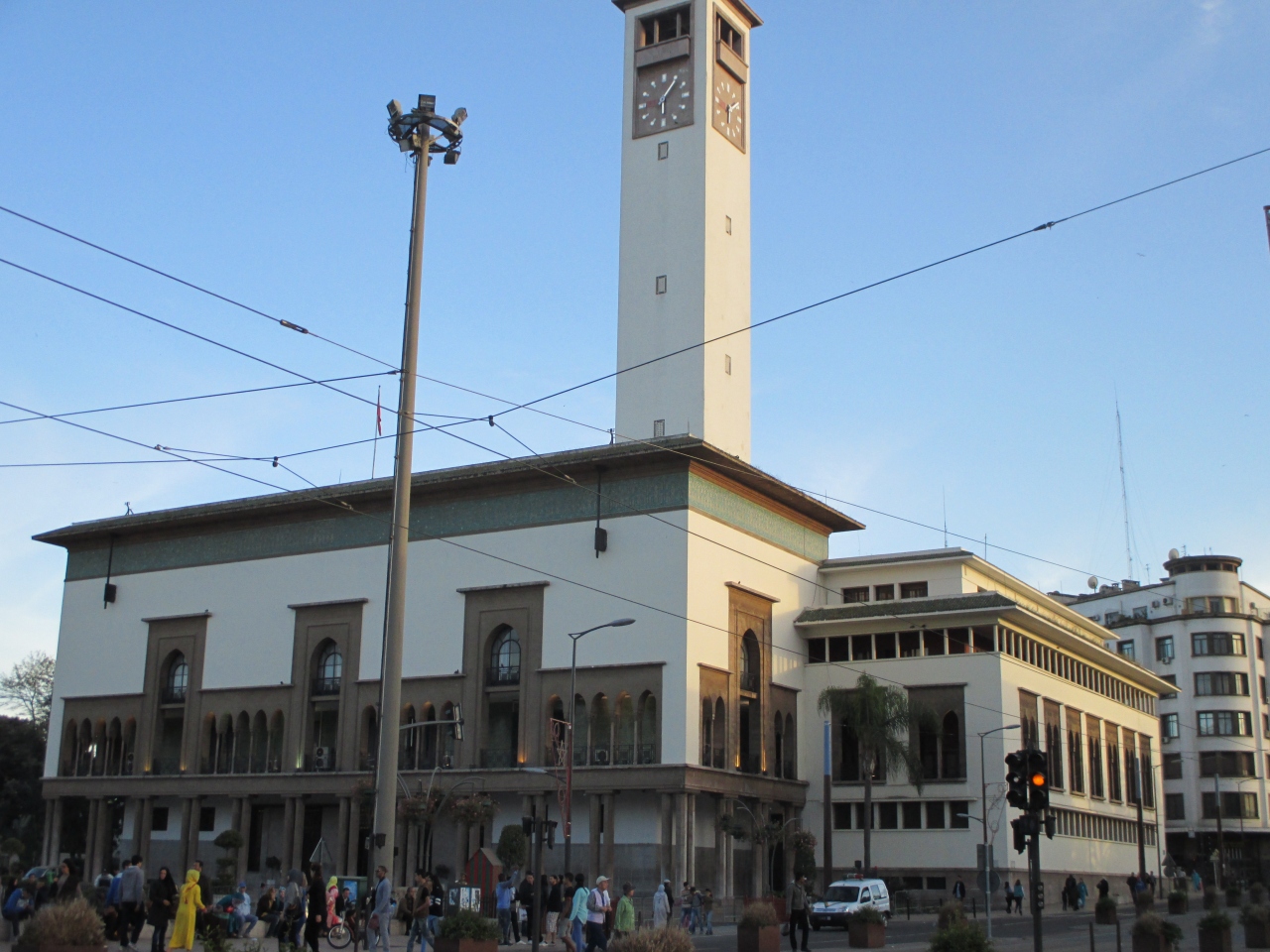 トラムにムハンマド5世広場という駅があるので、降りてすぐというアクセスバッチリです。なぜなのかとにかくすごい人です。スリには注意です。広場に建つ建物は近代的です。この広場の向かいの時計台つきの市庁舎の塔が素敵です。