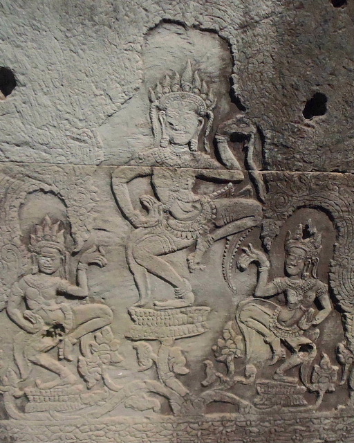 バイヨン寺院第一回廊のレリーフも、クメール軍の行進や戦闘シーン、民衆の生活まで多彩に渡っていて、解説を聞くと面白いです。