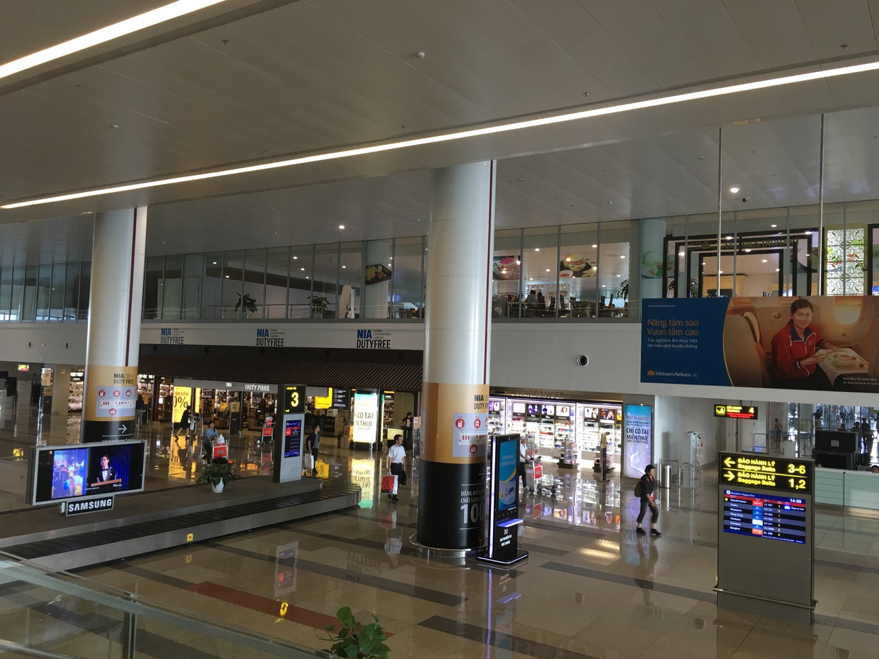 国際線出口を出て右側の方にバス停があります。外はとても暑く、一本乗り遅れると次の便を待っているのがしんどそう…バスは日本のようなノンステップバス?ではなく、車内へ乗る込む段差が高い!大きなスーツケースは持ち上がらなくて大変でした。そして出発ギリギリだったので立ちでしたが、バスがまぁ揺れる揺れる…スーツケースが転がっていかないようにするのと自分がすっ飛んでいかないようにするので、筋肉痛になりそうでした…。