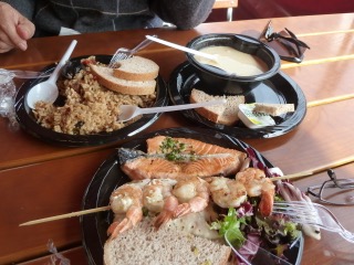 サーモンとエビのグリル、パエリア、フィッシュスープを食べてみました。