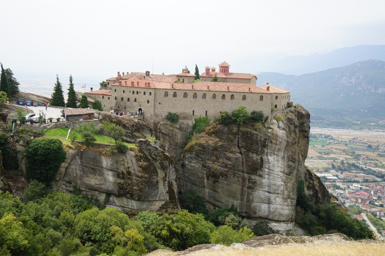 宿泊したカランパカのホテルから奇岩の上の修道院が見えました。それがこのアギオス ステファノス修道院でメテオラのなかでも一番東にある修道院です。