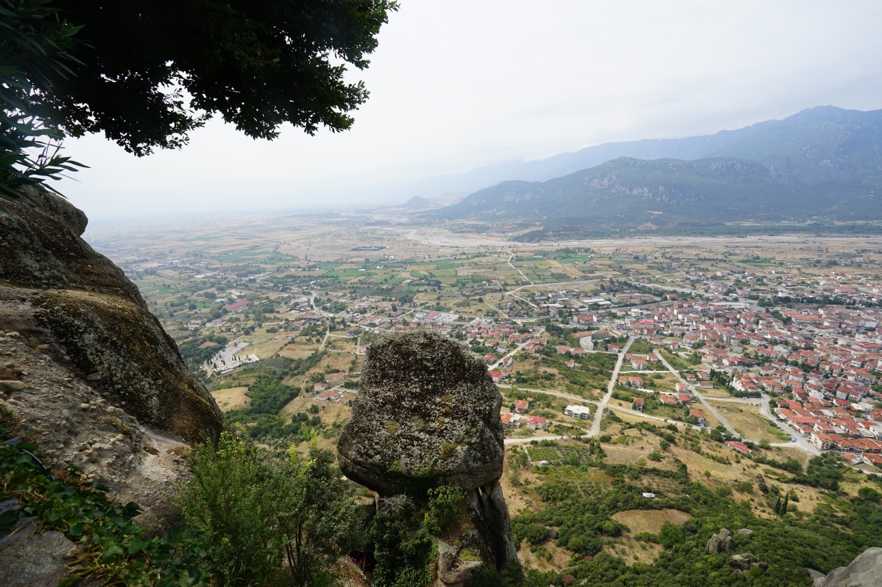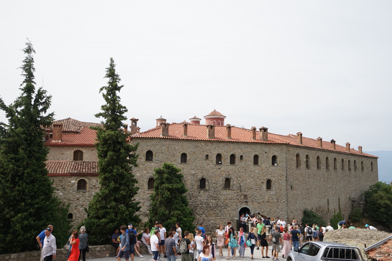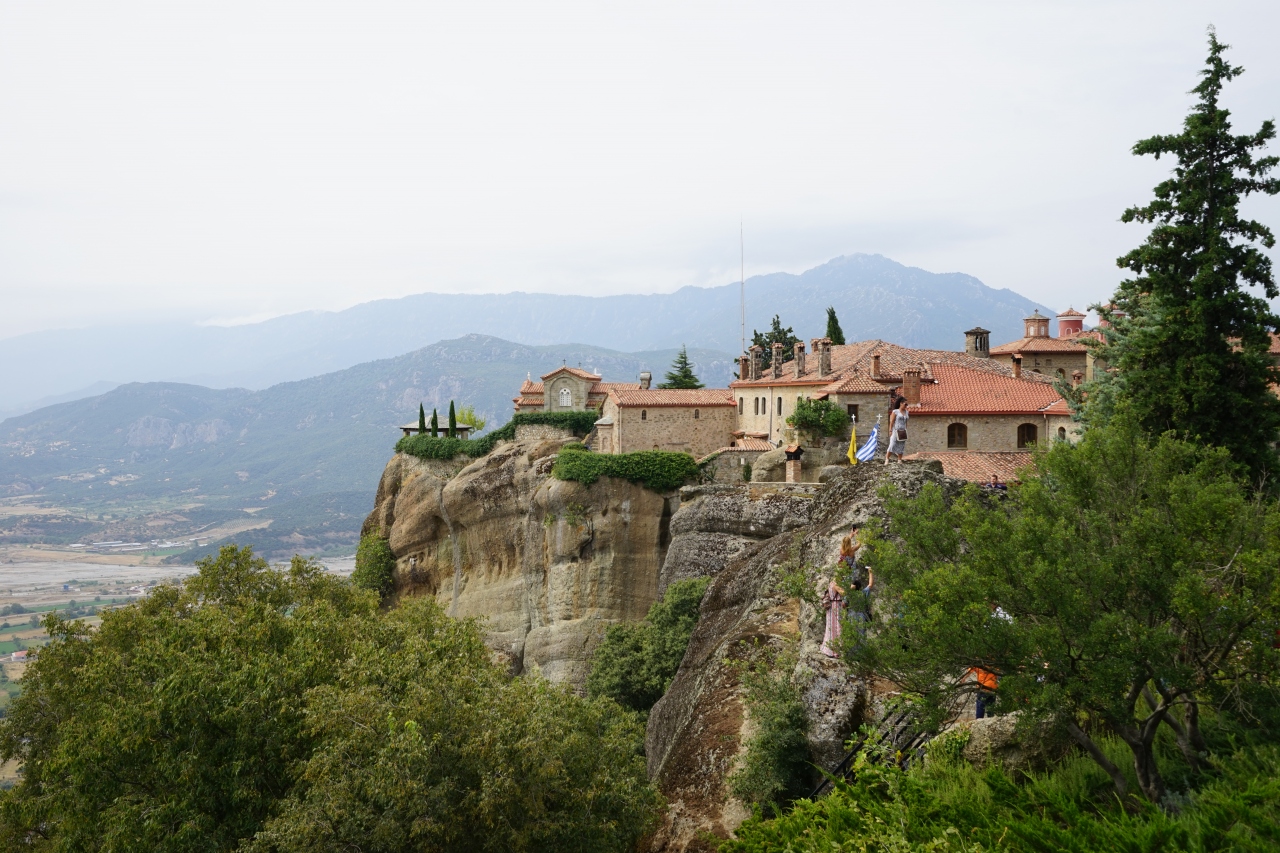 メテオラで唯一、階段なしで入場できる修道院だそうです。道路(駐車場)から小さな橋で渡りますが下を見ると断崖絶壁となっていました。