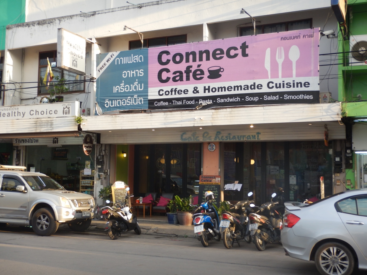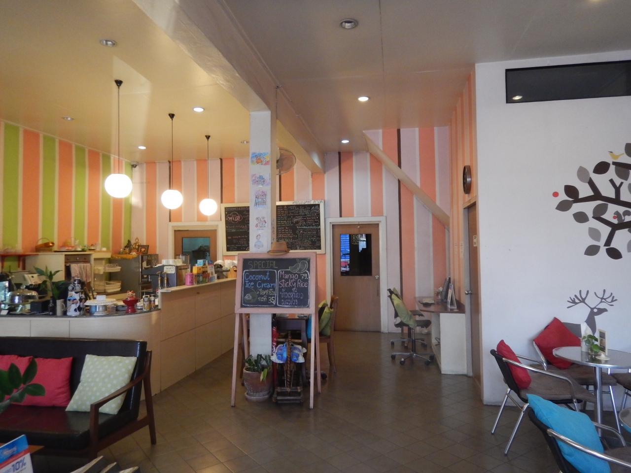 チェンマイからバスで到着した。疲れていたので第一バスターミナル前のこの店で一休みした。エアコンが効いている店でアイスクリームを注文した。49バーツ。一度席まで持ってきたが、クリームを乗せ忘れたとのことで再度乗せて持ってきた。