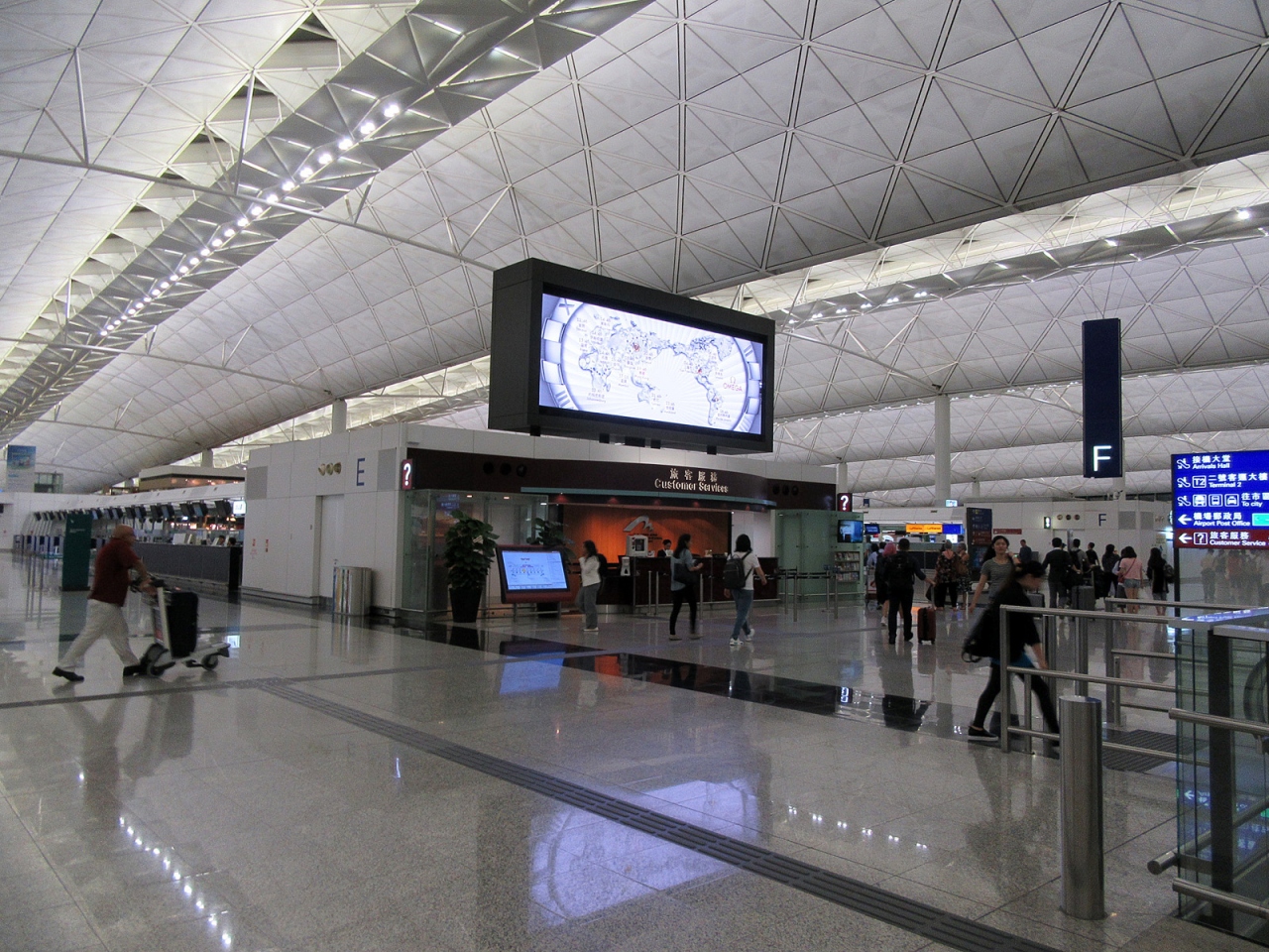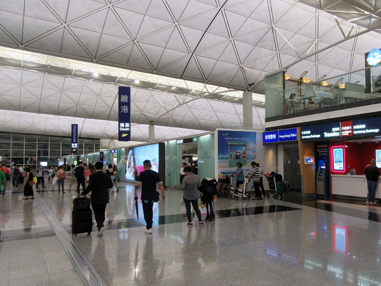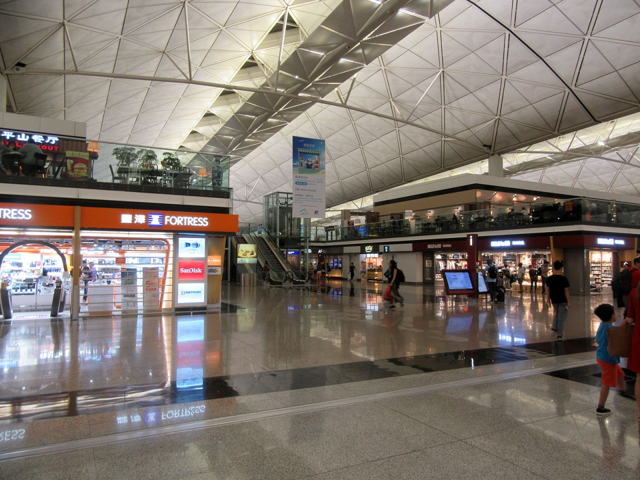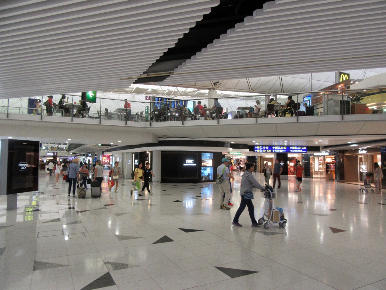 「九龍」駅や「香港」駅で既に利用便のチェックインが済んでいれば、そのまま出発ターミナル奥のイミグレーションへ向かいます。手荷物検査場を出ればすぐ目の前が出国手続きカウンターと、動線に無駄もなければ一切の段差もありません。出国手続きを終えれば、そこは多くのお店で賑わう華やかなショッピングモールのようです。香港ですねぇ。