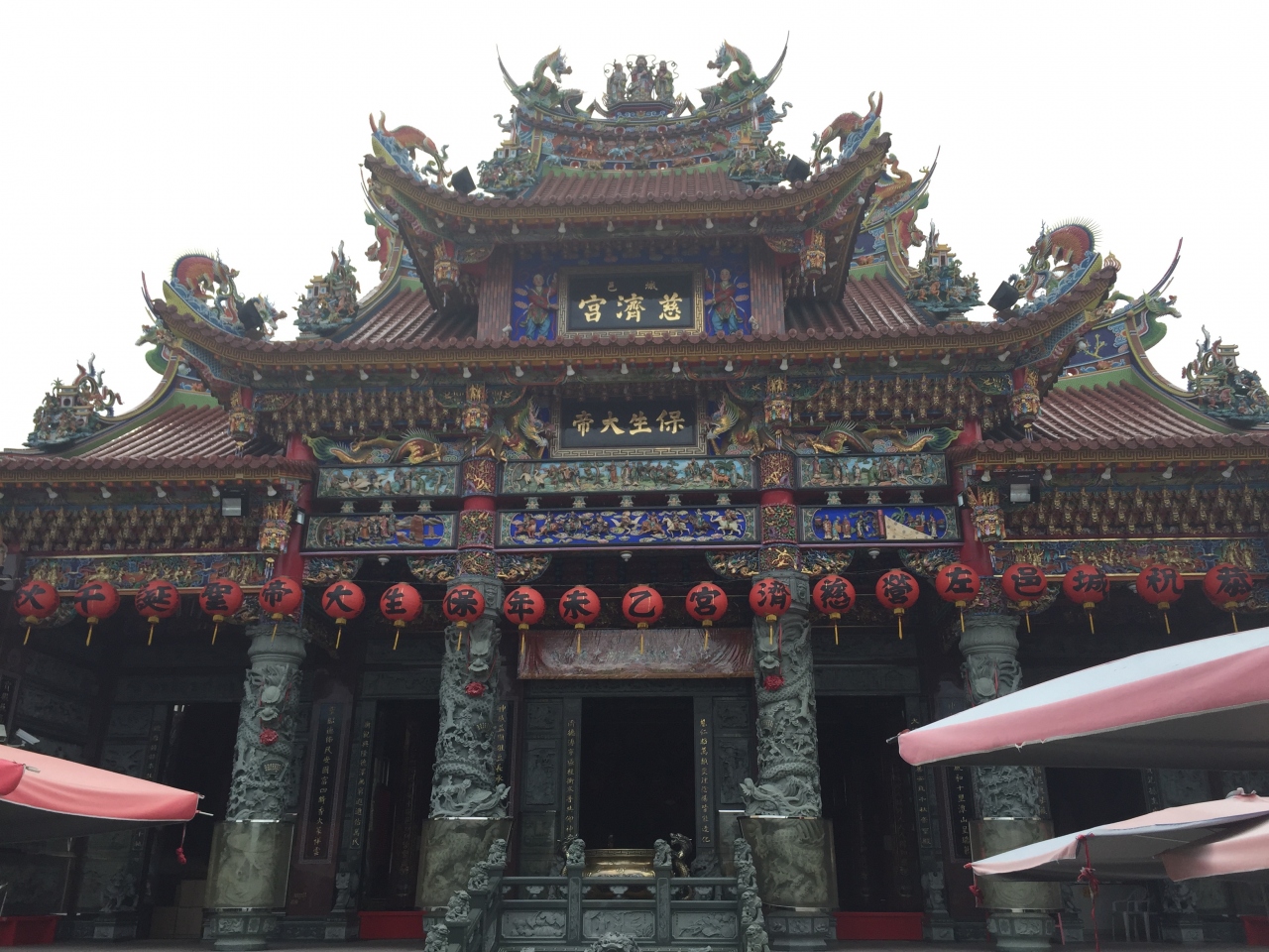 台湾のお寺はここしか行ったことがありませんが日本では考えられないド派手なお寺でした。