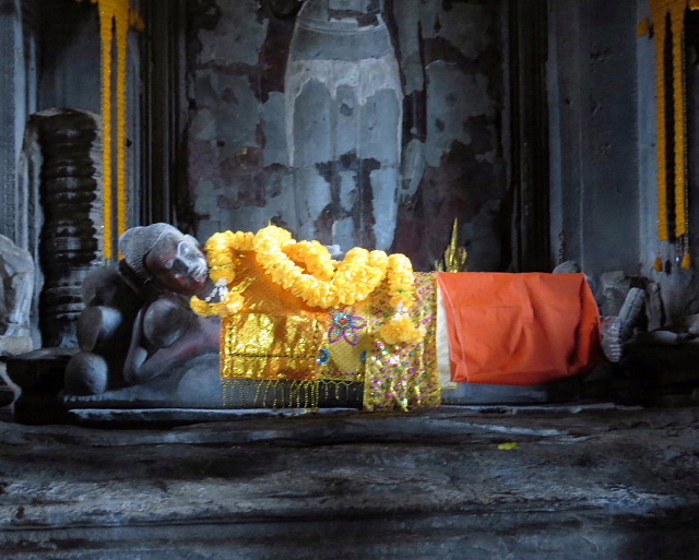 アンコール・ワットは、12世紀前半、アンコール王朝のスーリヤヴァルマン2世によって、ヒンドゥー教寺院として建立されましたが、16世紀にソター王は仏教寺院へと改修し、本堂に安置されていたヴィシュヌ神を四体の仏像に置き換えたそうです。
