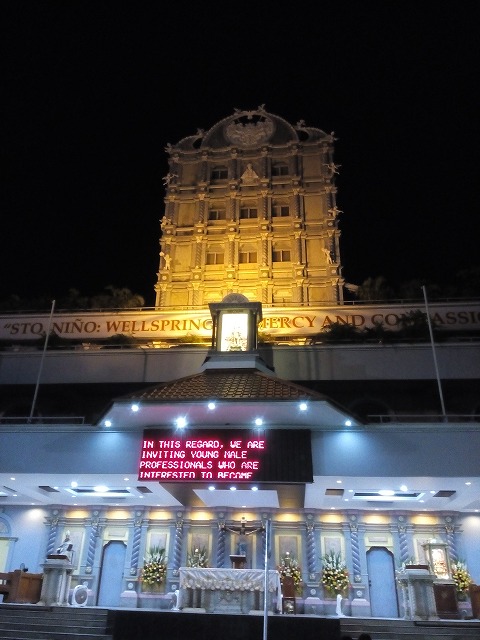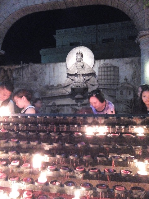 フィリピン人の方にならって、ロウソクを買って火をつけお祈り。ロウソクはお金を入れる箱があるので(貯金箱風)そちらに。夜に訪れたので、夜の暗闇とロウソクの灯りがマッチして綺麗でした。