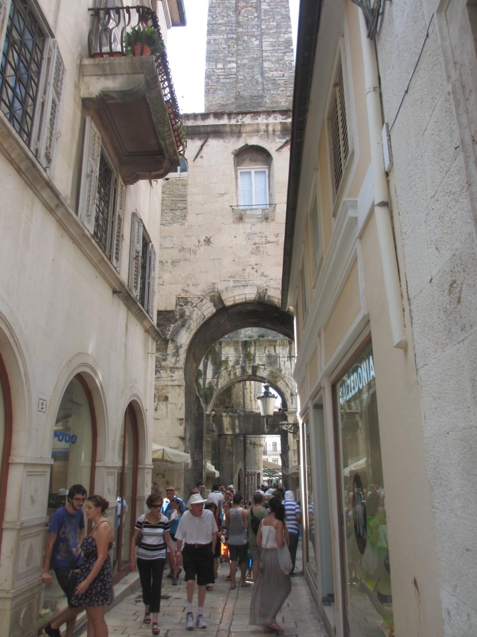 スプリットの城壁の中のメインとなる通りで、東西を結んでいます。城壁の門でいうと鉄の門と銀の門を結んでいます。平日の日中に通りましたが結構人通りは多かったです。店が連なっていて石畳も雰囲気がありました。