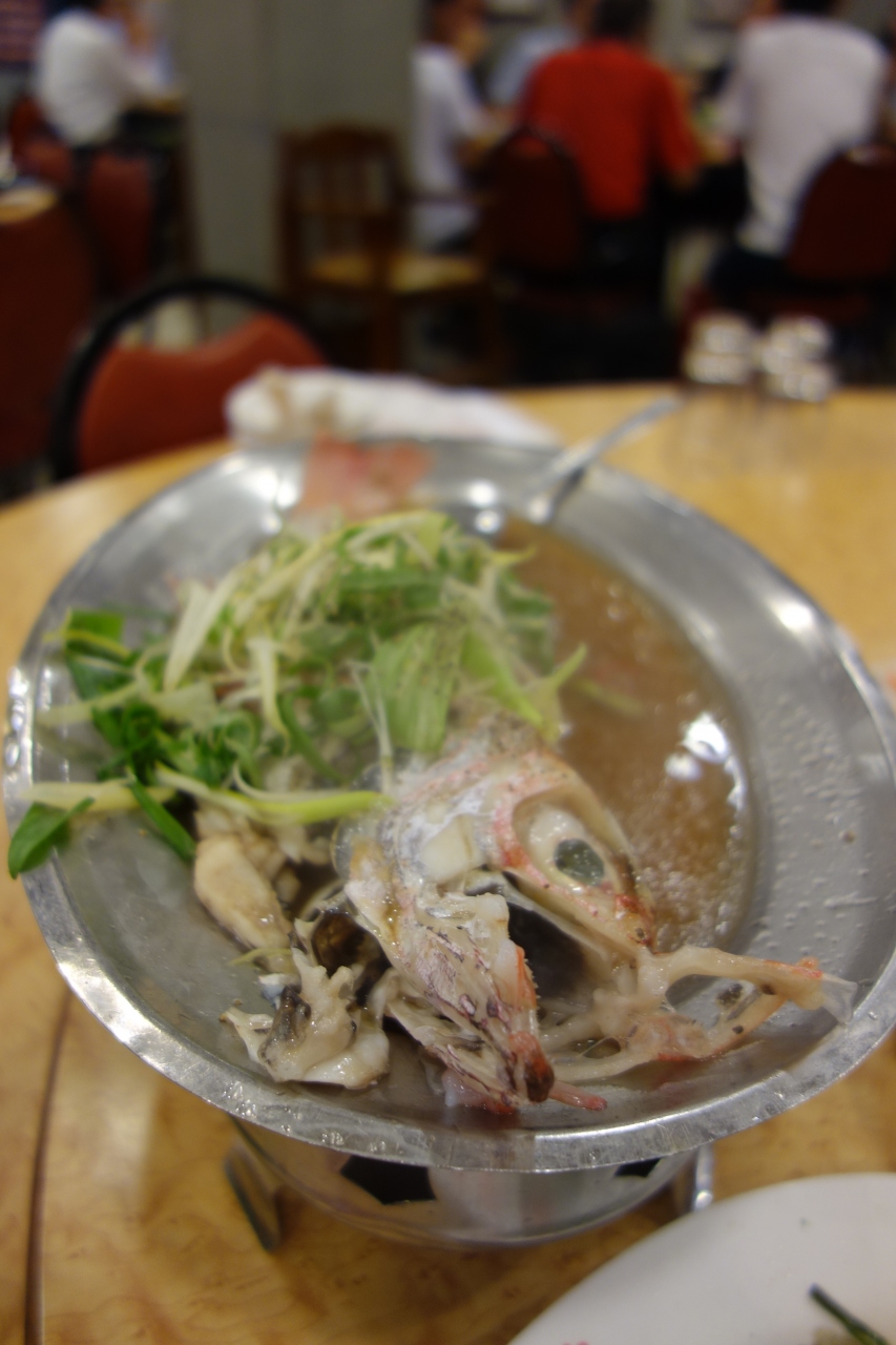 店頭で調理してもらう魚貝類・野菜を選び、調理法を伝えるスタイル。店のおばちゃんの一人は少しだけ日本語ができました。日本では高級魚となったノドグロもリーズナブルなお値段で頂けます。日本人観光客には、おばちゃんが「ノドグロ?蒸す?焼く?」と話しかけてくるでしょう。(ちなみに台湾では、ノドグロ=紅喉(発音はホンホウ、そのまま訳せばノドアカ?)のようです。)
