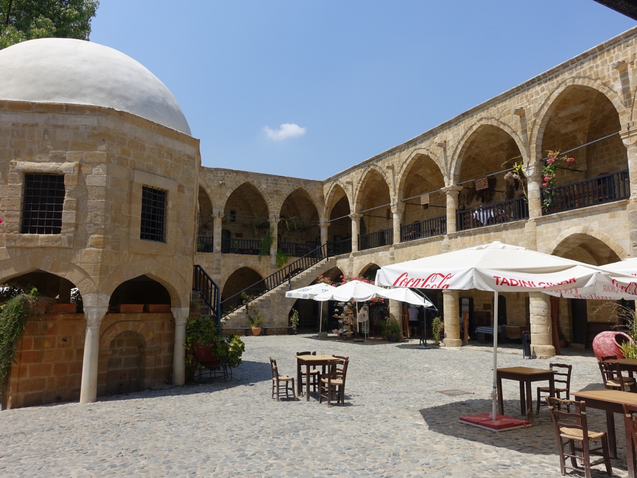 ニコシアの北キプロス側(トルコ側)にある施設です。せりミエジャーミーに次ぐ象徴的な建物です。ぐるっと囲まれた壁の中心を取り囲むように68の部屋があります。おそらく、旅人や、商売の人たちが、宿泊するための施設だったのではないかと思われます。現在も1階のいくつかの部屋は、お店として利用されているようです。