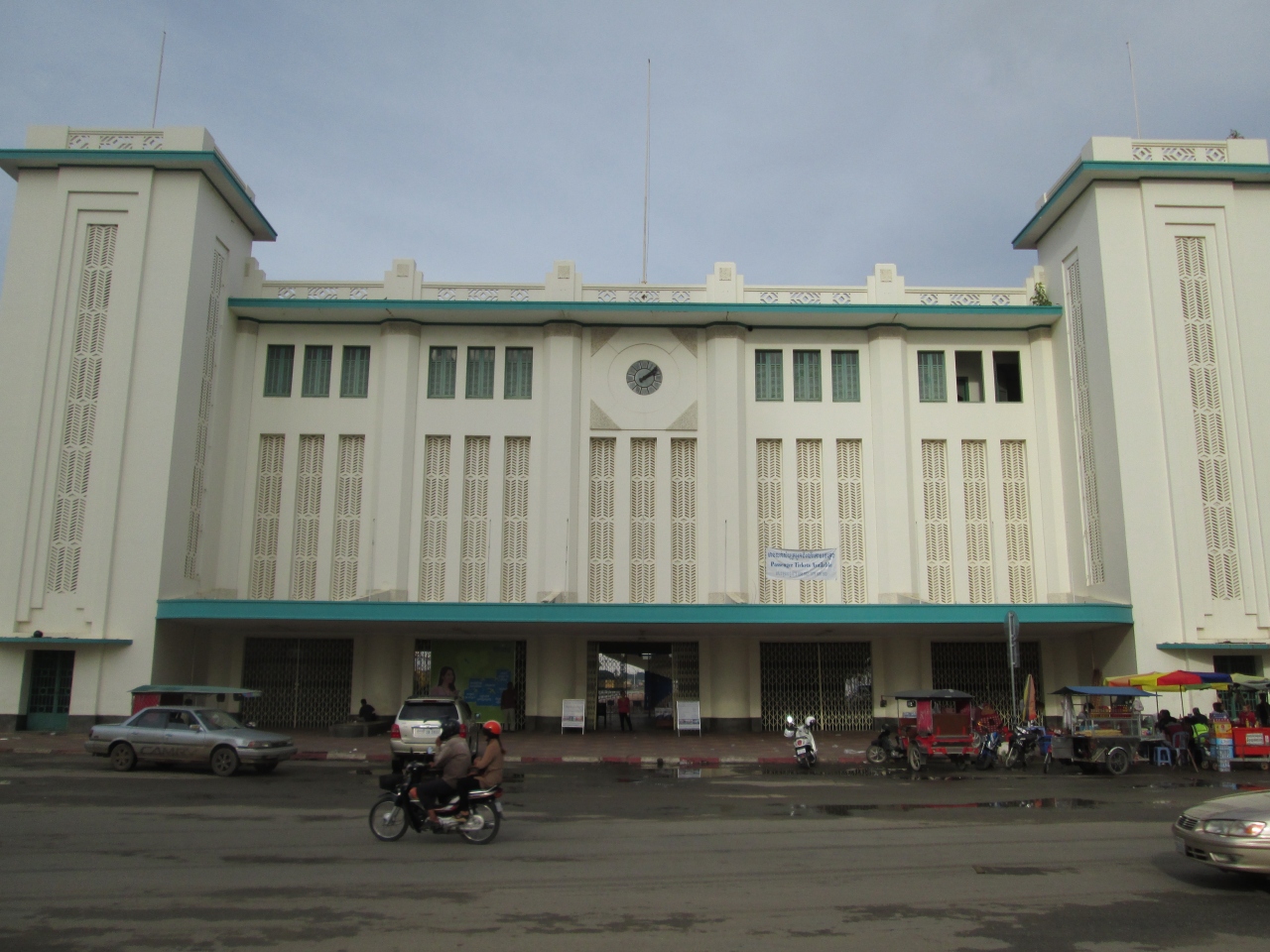 プノンペンの中心地にあるプノンペン駅です。現在、カンボジアの鉄道全体が修復工事の状態で旅客用の列車の便はなく、貨物便のみが週3往復出ているようです。将来的にはタイ・バンコクと国際鉄道が運行するようで待ちどおしいところです。外観は立派な建物でした。