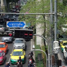良くタクシーに乗りながら朝夕は自動車が連なって中々進まない光景を見てバンコクの風物詩と思って見ていました。信号待ちではバイクのスタートもある意味見応えがありますね。MBKに向かう際に連絡歩道橋からラマ1世通りを見るとまた違った景色に見えますよ。バンコクの都会らしさを感じます。