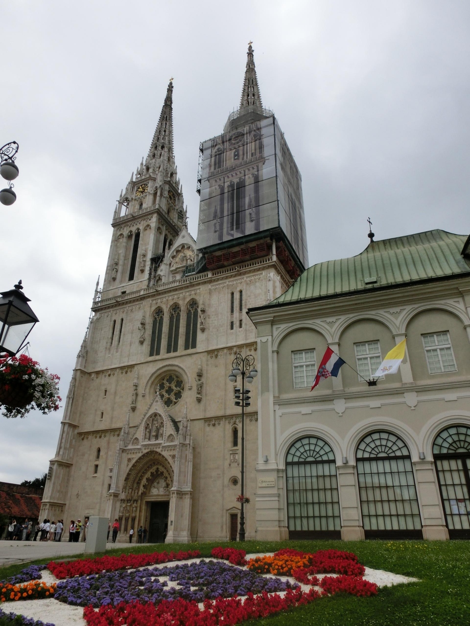 ザグレブ旧市街の観光は聖マリア被昇天大聖堂から開始しました。高さが100メートル以上もある大きな建物なので旧市街のどこからでも大聖堂が見えます。旧市街には主な観光名所が集まっていたので全て歩いて回れました。