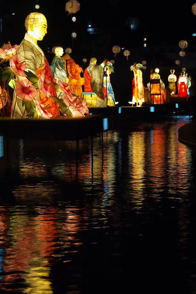 2014年GWの韓国は、セウォル号の事故のために数々のイベントが自粛。リサーチしてた情報がほとんどフイになってしまったのは仕方ありません。お釈迦様の誕生日を祝う「燃灯祭」は規模を縮小したもののさすがに開催されていたので、夜はそちらを見物に清渓川へ出かけました。イメージは長崎のランタンフェスティバルでしょうか?あるいは青森ねぶた?清渓川に大きな張りぼての提灯が浮かべられて、見物客の目を楽しませていました。
