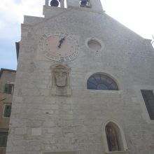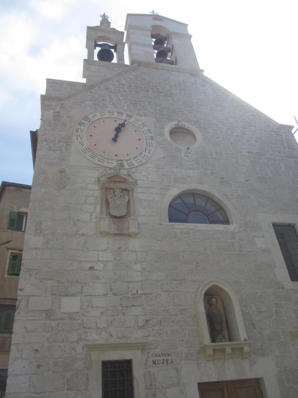 シベニクの旧市街にある小さな教会です。地図も見ずに旧市街をぶらぶらと散策していたら出会いました。中に入ることができなかったのは残念でしたが、建物は味わいがありますし、時計や鐘なや窓や彫刻が一見不規則なようで絶妙に配置されていると思いました。