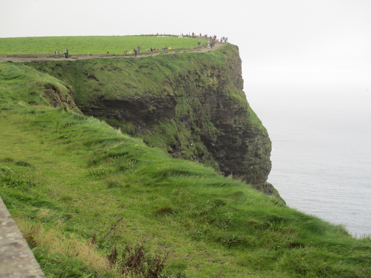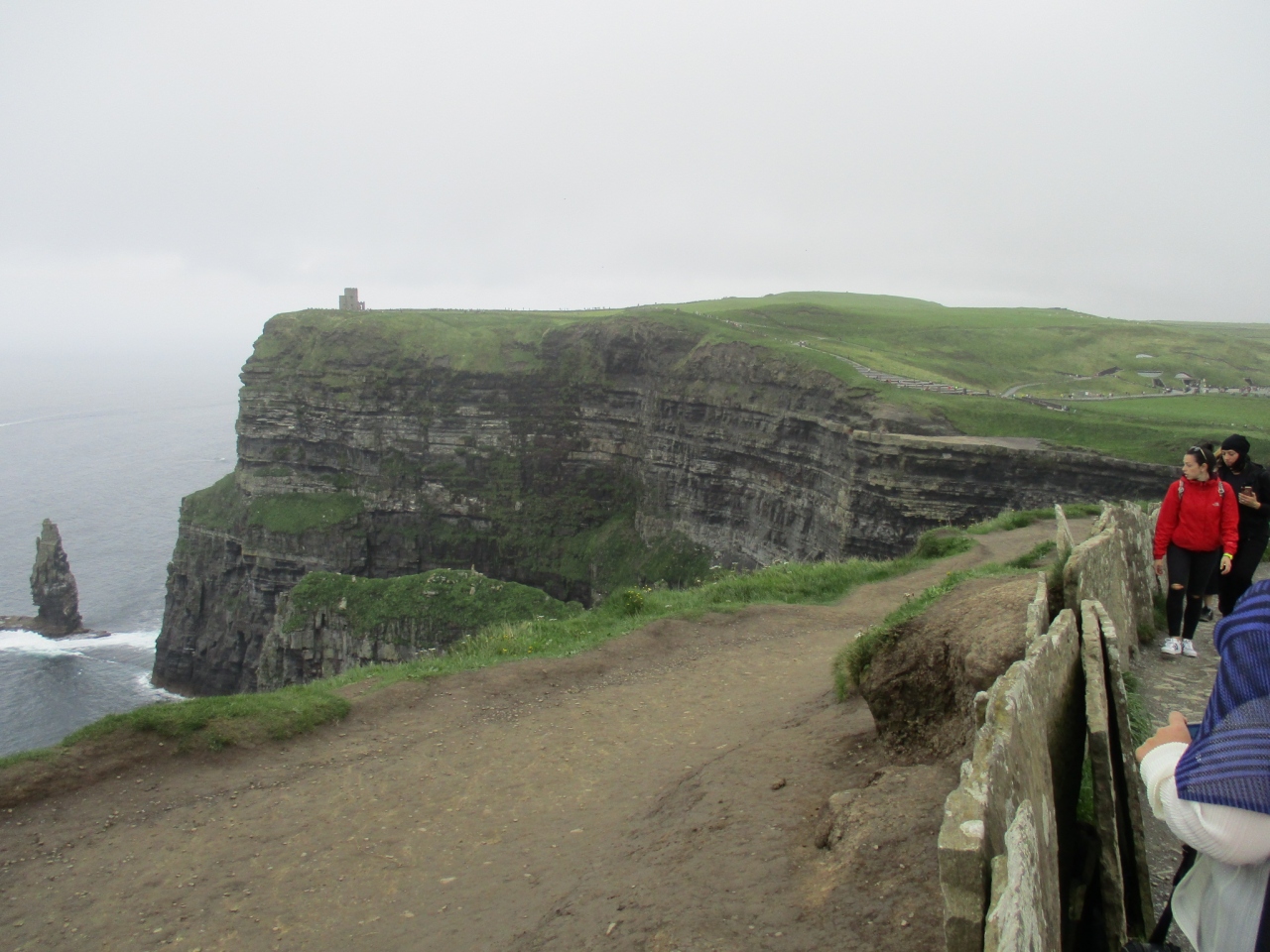 霧に覆われていても大西洋の強風が吹いてくるすさまじい遊歩道で、強風が吹くと海水が水飛沫となって雨のように降ってくるのでずぶ濡れになってしまいます。