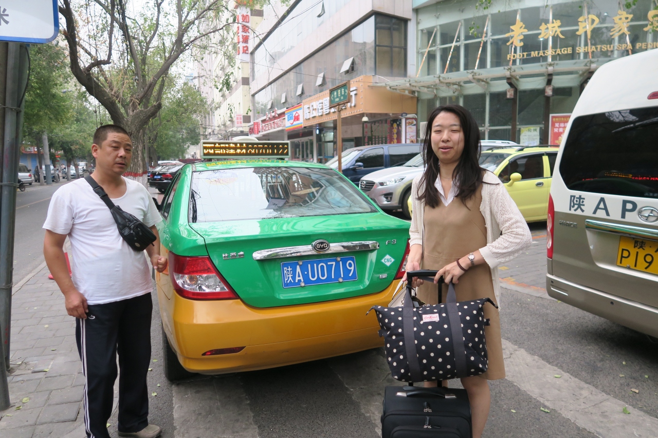西安国際空港の市内のホテル(鐘楼のそば)への往復は、それぞれタクシーを利用した。市内行きの際は、空港にてミドリのタクシーが安全と聞いたし、タクシー料金の早見表をもらったので、安心して乗ることが出来た。料金は、150元(高速料金含め)。ホテルから、空港行きの際は、ブルーのタクシーを拾ったが、ミドリのタクシーより、車両が広くて、中もきれいであった。料金は、160元であったが、乗り心地が良かったので文句なし。