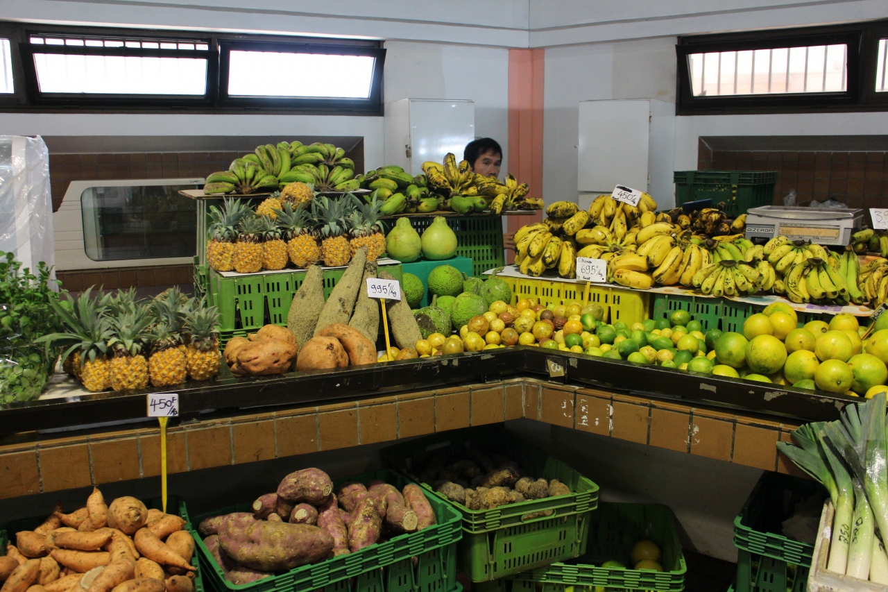巨大な野菜や果物がたくさん売られていて見ていて楽しかったです。