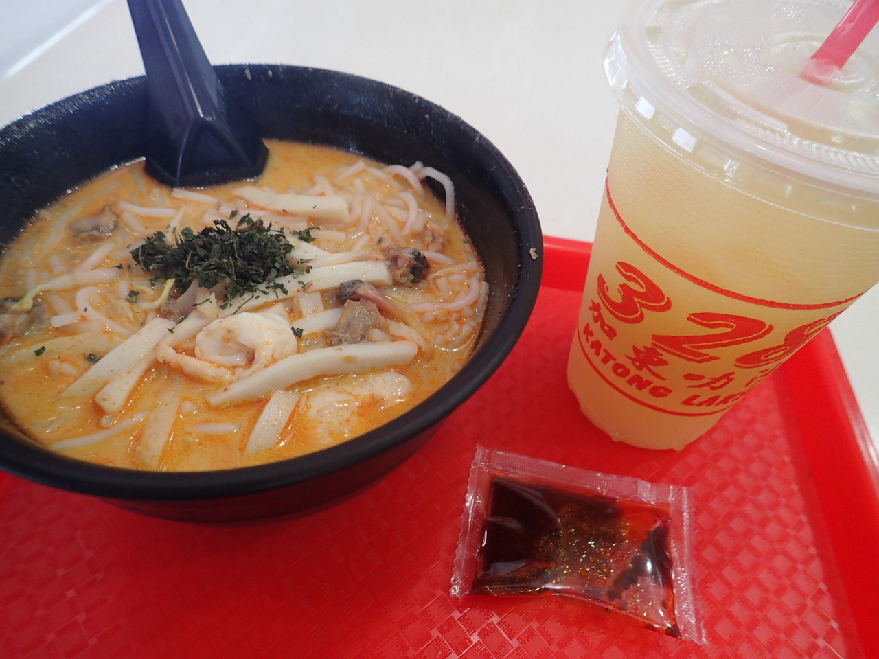 ココナッツミルクの効いた甘辛いラクサはやっぱり美味しい。