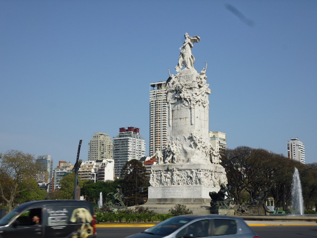 大きな通りの真ん中にある大きなスペイン人記念碑です。まわりには動物園、日本庭園、競馬場、2月3日公園といろいろなものがあり、観光に便利な立地です。