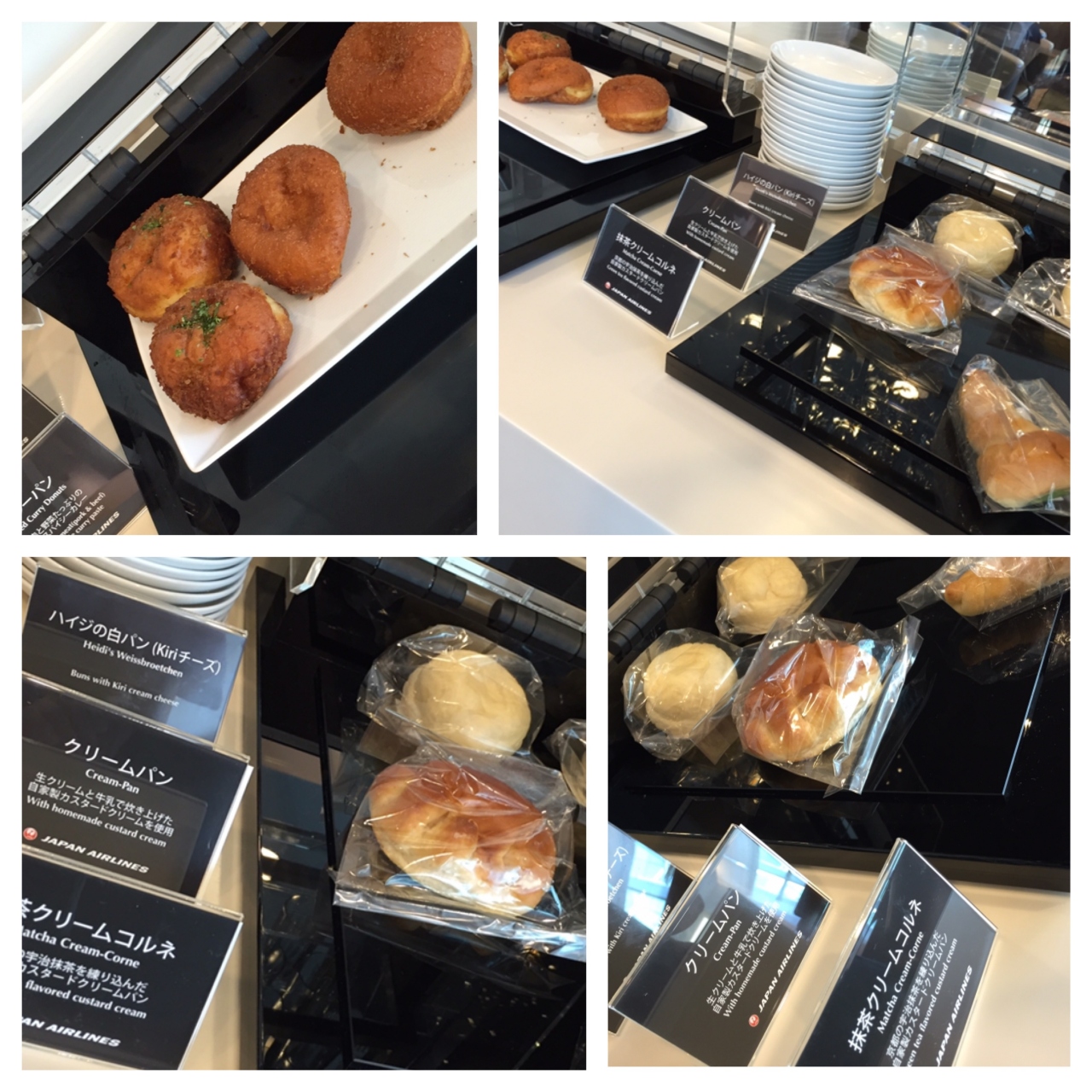 『ハイジの白パン(kiriチーズ)、クリームパン、抹茶クリームコルネ、たこ焼きロール、カレーパン....』。こんな日本の菓子パンのラインナップがあるラウンジは、世界広しと言えども、きっとここだけだと思います~。