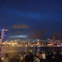だんだん日が落ちて、ビル群の灯りが点灯され景色はとてもきれいです。