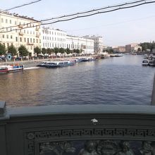 この運河はネバ川に近く、ぐるっと蛇行してエルミタージュ美術館のほうまで流れています。