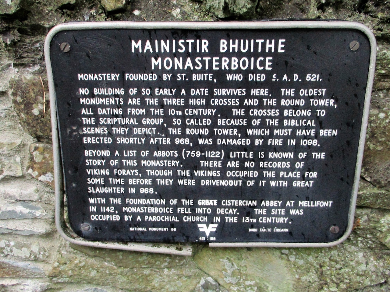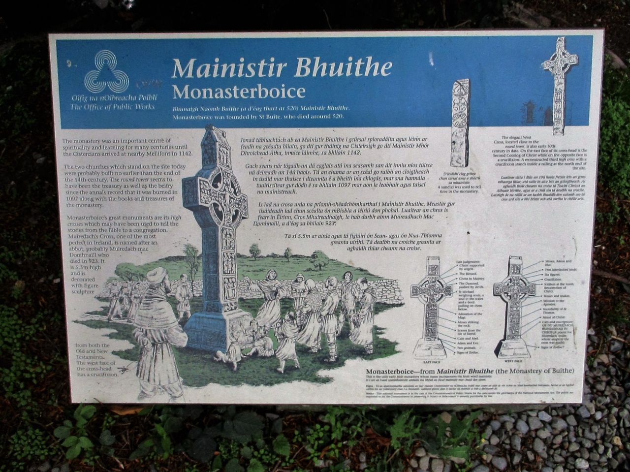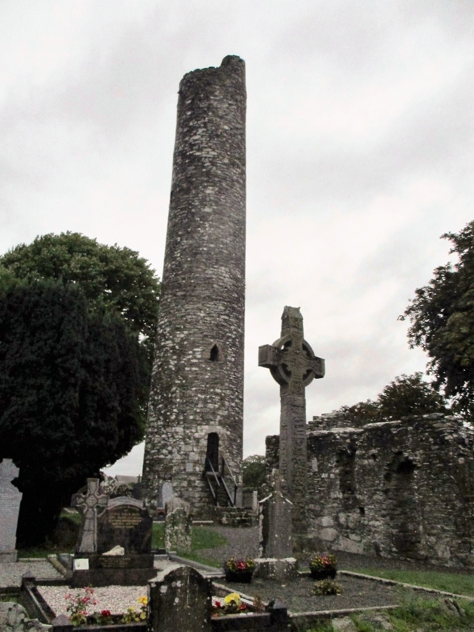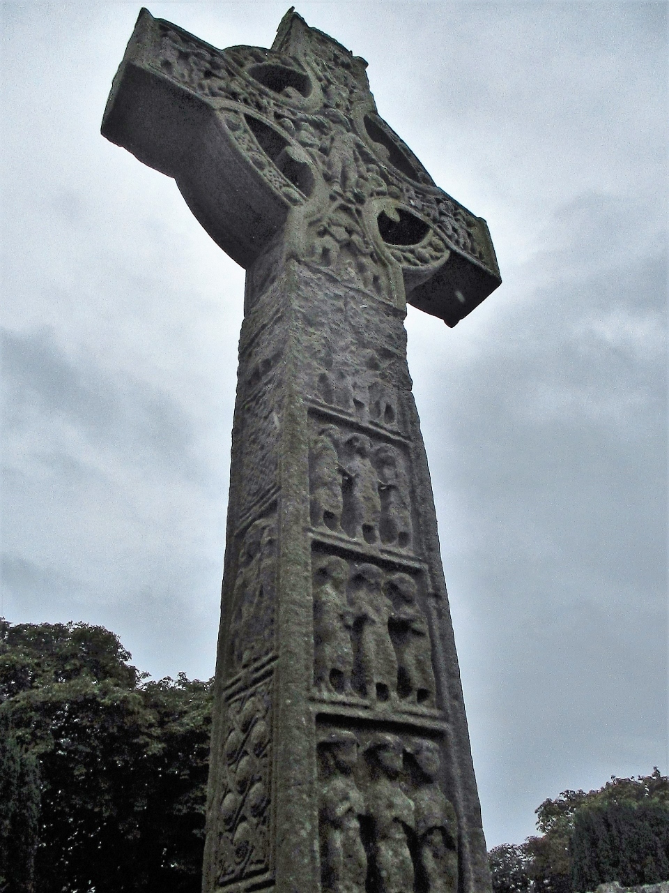先端が破壊されたラウンドタワーの周囲には墓標が林立しており、その中の一つに10世紀頃の大きなハイクロスがあり、前面にレリーフが施されておりアイルランドで最も有名なハイクロスと言われています。
