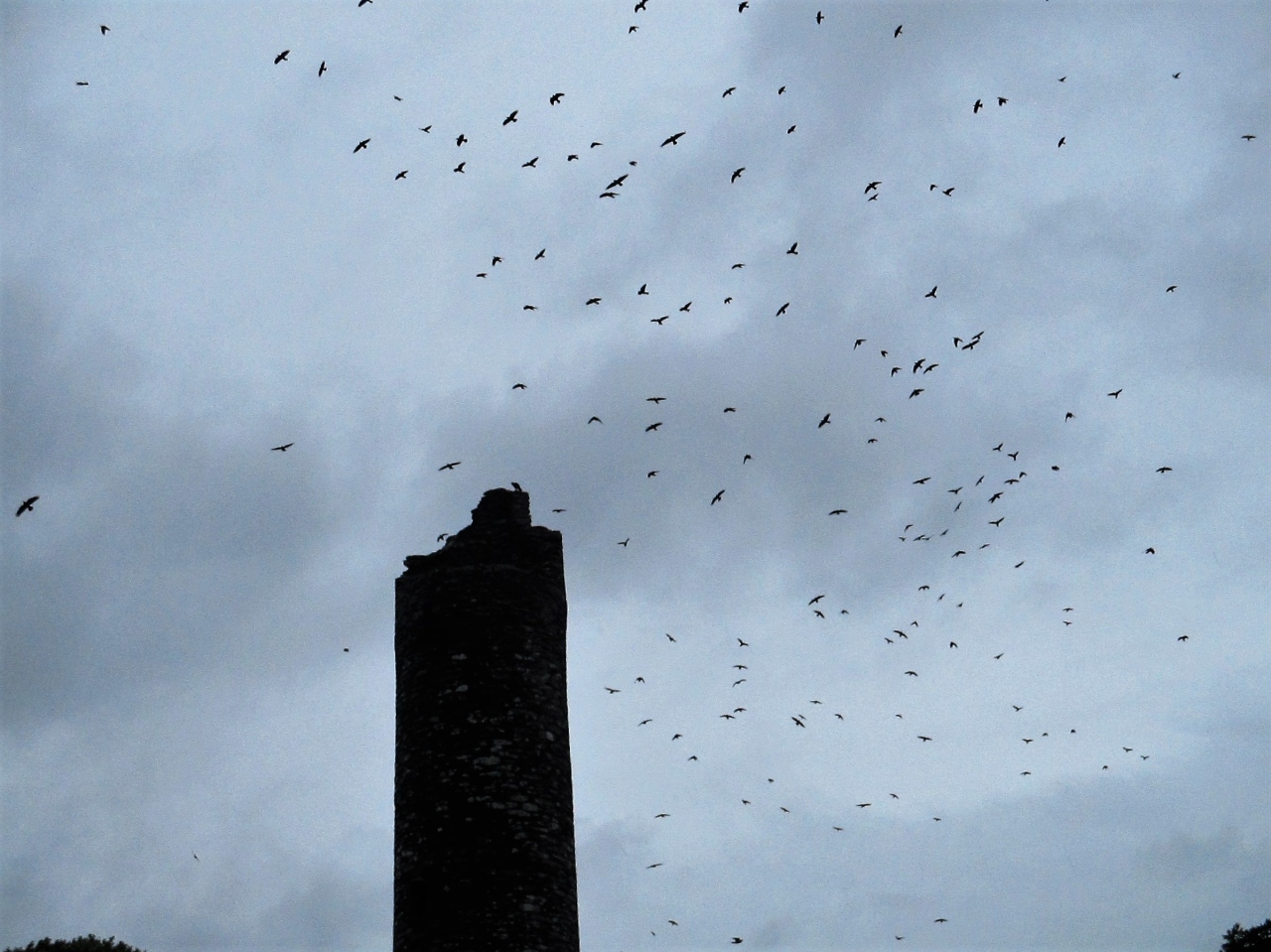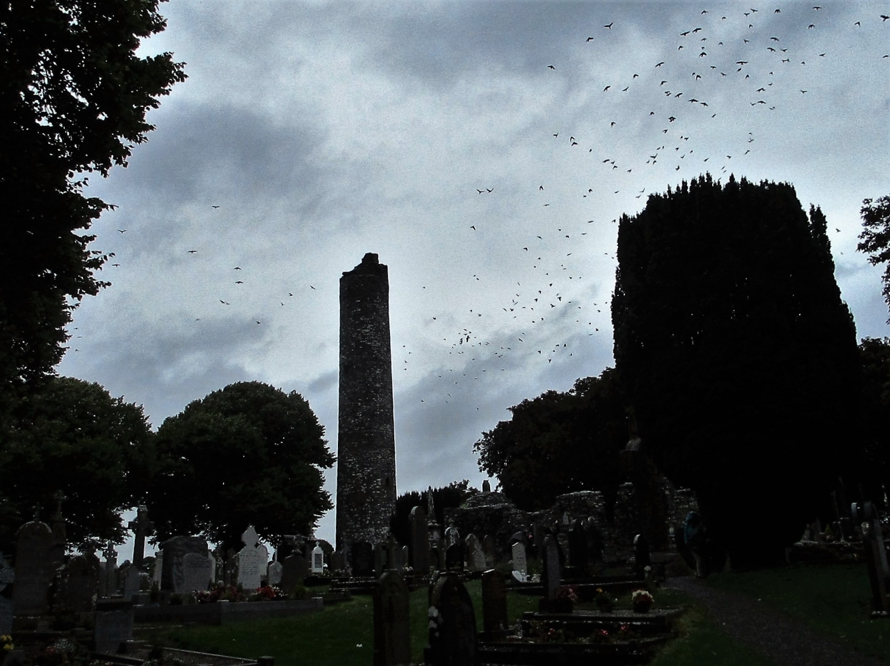 世界遺産ニューグレンジのあるボイン川渓谷から北へ行ったところにある5世紀に建てられた教会跡の人気のないひっそりとした所で、上空を黒い鳥の大群が待っている不気味な場所でした。