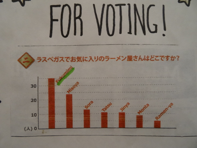 テーブル席20、カウンター席6のお店で壁にはラスベガスジャパンタイムスでラーメン人気店1位という記事があってありました。店内ランキング1位のフクミミラーメンを注文。細麺で中のチャーシューがとても美味しかったです。