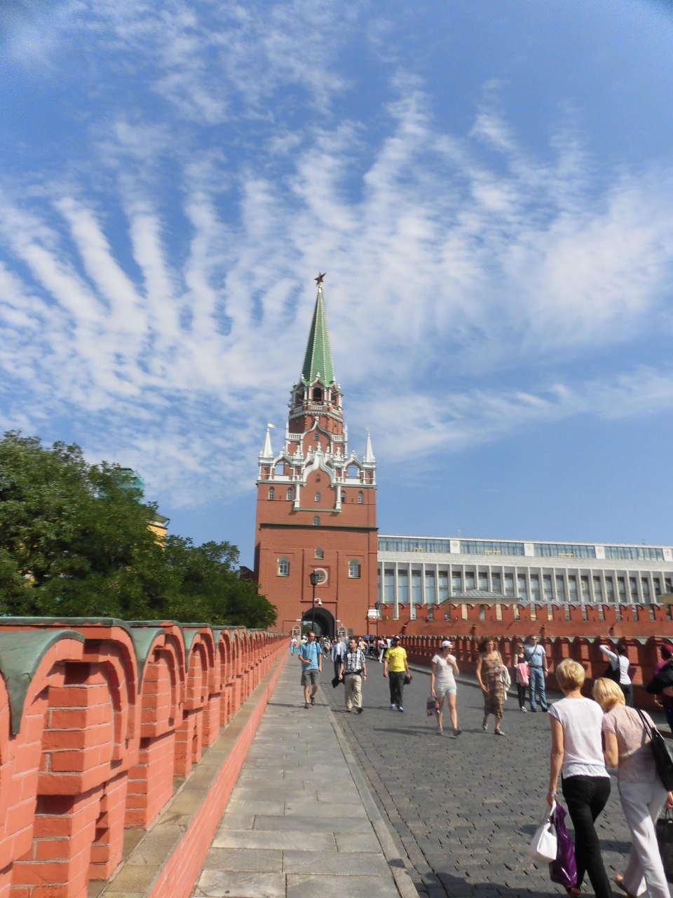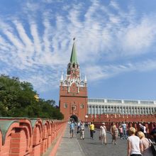 クレムリンの正門です。高さもありなかなか見事な門です。荷物(デイパックは不可)がある人は近くの荷物預り所に預ける必要があります。