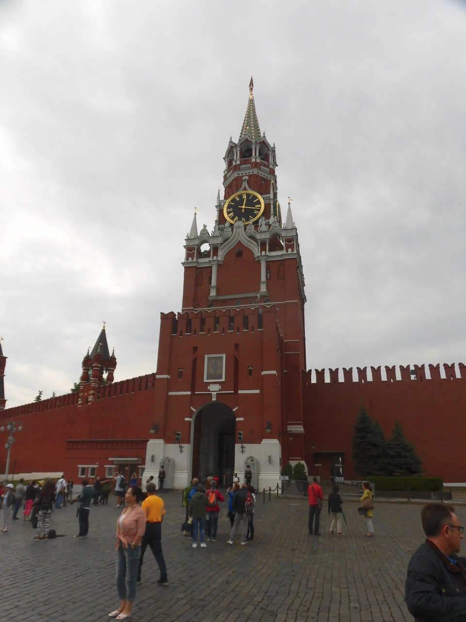 クレムリンにある赤の広場に面する塔です。レーニン廟に程近いところにあります。この門は大統領以下政府首脳の公用門だそうですが、観光客も出口としては使えるようです。上部には大きな時計がついており、ゲートからはアルハンゲルスキー聖堂も見え、なかなか印象深い建物です。