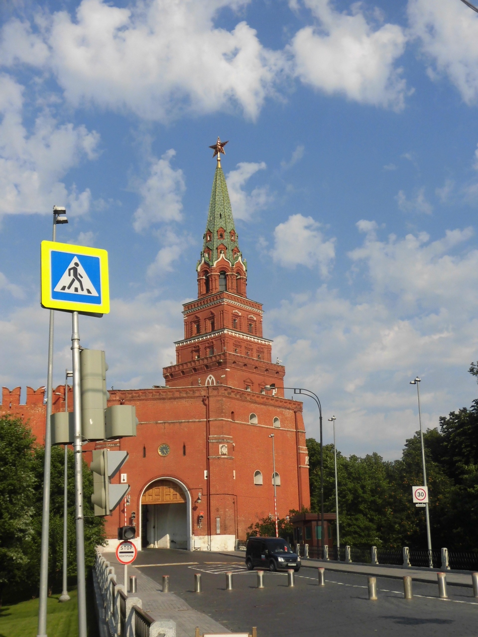 クレムリンの南西にある塔です。大統領府に勤務している普通の人はこの塔にあるゲートで通勤しているらしく、車の出入りが多いです。