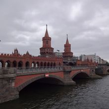 S-bahnのWarschauer Str.から、イーストサイドギャラリー East Side Galleryを巡り、Ost bfからS-bahnに戻るルートで観光。その途中に、レンガが積まれたきれいな橋があったので、ちょっと寄り道。この橋は、シュプレー川Spreeによって隔てられている、クロイツベルク地区Kreuzbergとフリードリヒスハイン地区Friedrichshainの古くからの2地区を結んでいる橋で、区の紋章にも描かれていて、橋の中の雰囲気も良かった。