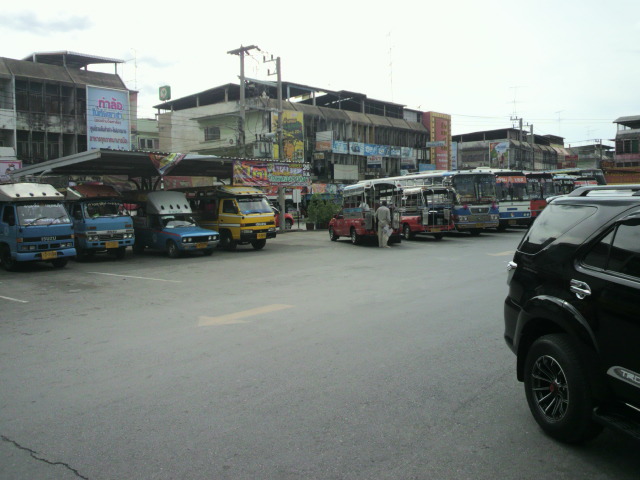 中長距離のバスに連接するように、ミニバス、バイクタクシー、ソンテウ等が多く集まっています。