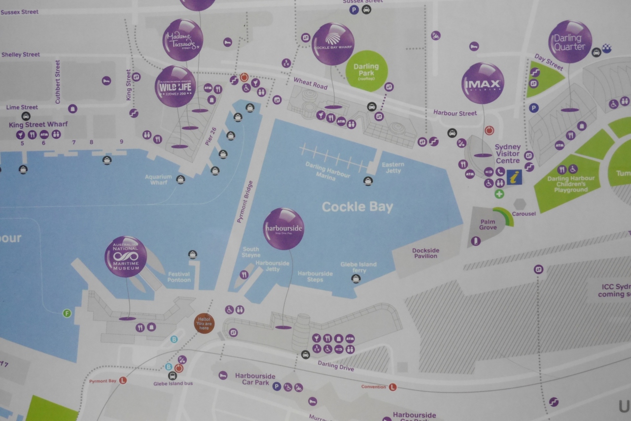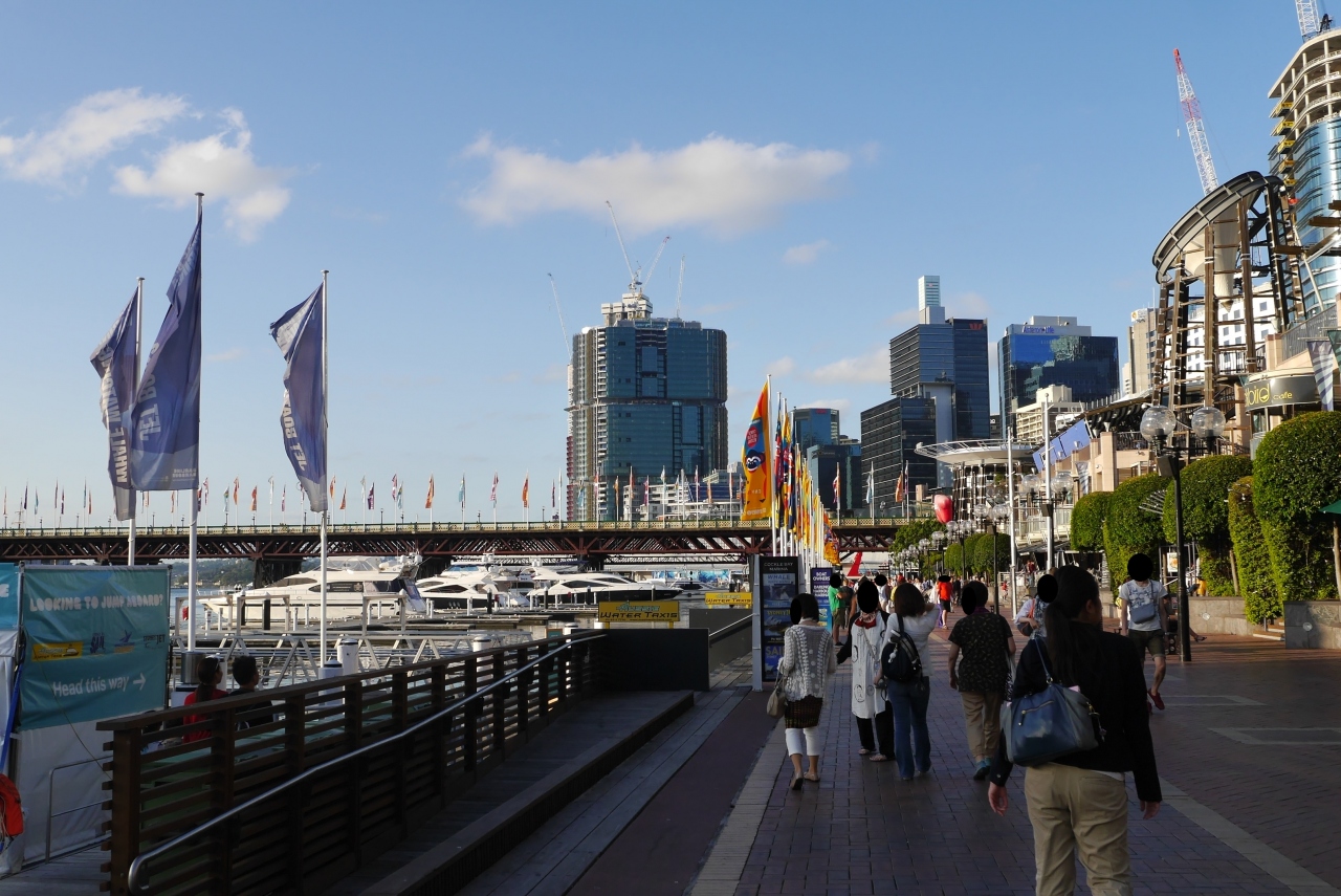 シドニーに数多くあるハーバーの一つで、周辺にはお洒落なレストランやカフェが沢山あり、シドニー水族館やマダムタッソー蝋人形館などのお楽しみスポットもあります。湾を横切る車の通らないピアモントブリッジを渡り、橋の上から見る景色も素敵です。湾の奥はコックルベイと呼ばれ、有名レストランが並んで、テラス席はお客さんで一杯になっています。