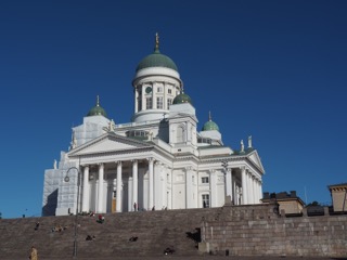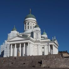 石畳の元老院広場から眺めると、白亜のシンメトリカルなデザインが美しい大聖堂です。