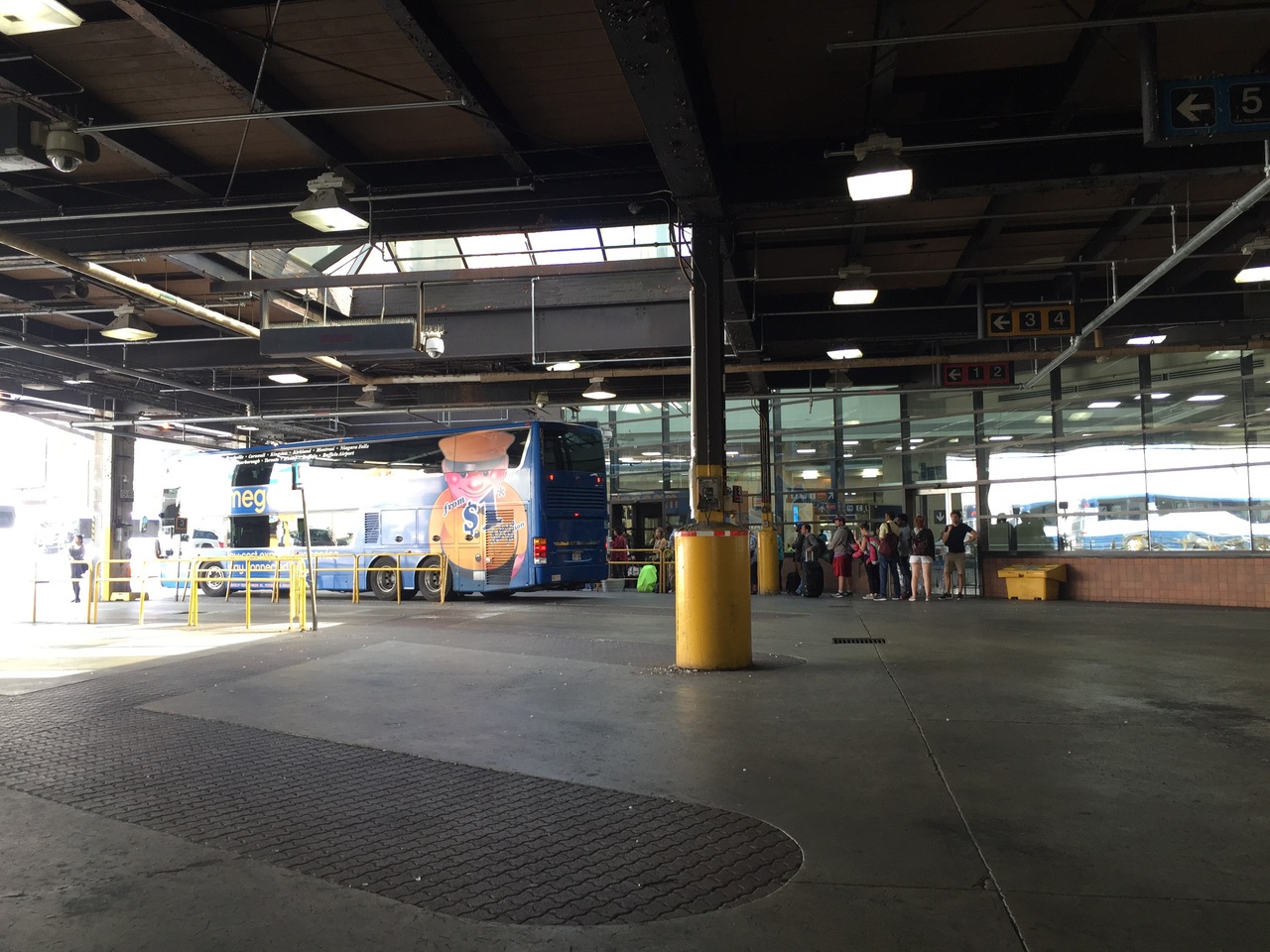 ナイアガラの滝へ行くバスやモントリオールへ行くバスに乗車する際に利用しました。バスターミナルの建物内に電光掲示板があり、出発時間や行き先、出発バス停の番号が掲示されているので放送が聞き取れなくてもわかりやすかったです。