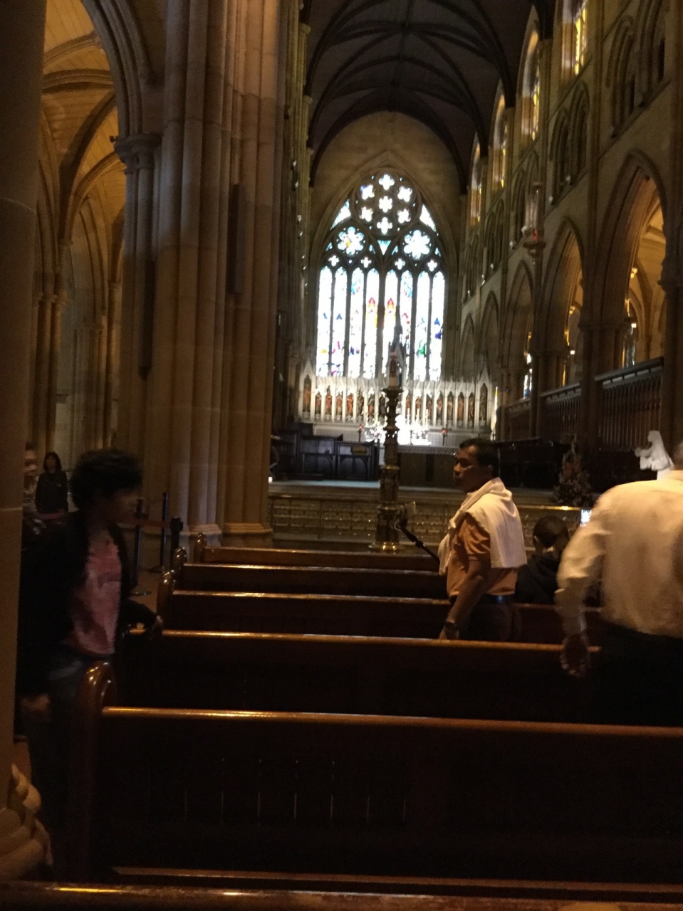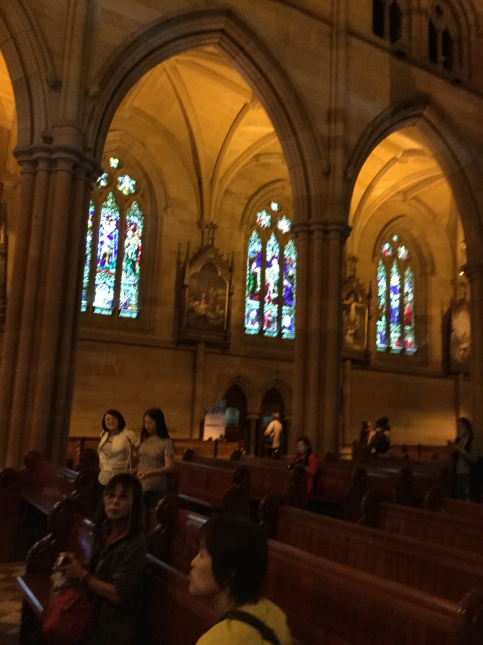 シドニーのメインになる公園ハイドパークの近くにあります。セント、メリーズ大聖堂の前の道路を渡ればハイドパーク公園です。天に突き刺さるようなゴシック建築の建物です。大聖堂の内部は美しいステンドグラスや彫刻が中世ヨーロッパの荘厳な風情を感じさせてくれます。もちろん無料です。