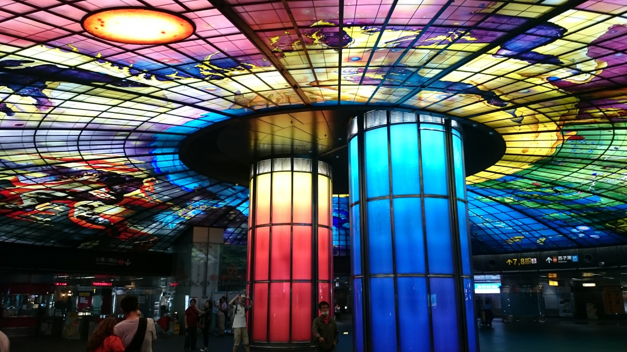 高雄MRTのred line, orange lineの乗り換え駅にあります。乗り換えるだけでは見られませんが、地下1階にあがったところで見つけました。夕方と夜の2階、この場所を通ったのですが、たまたま夜はショーの真っ最中でした。偶然ですが、見られてよかったです。時間を調べて見に行く価値があると思います。